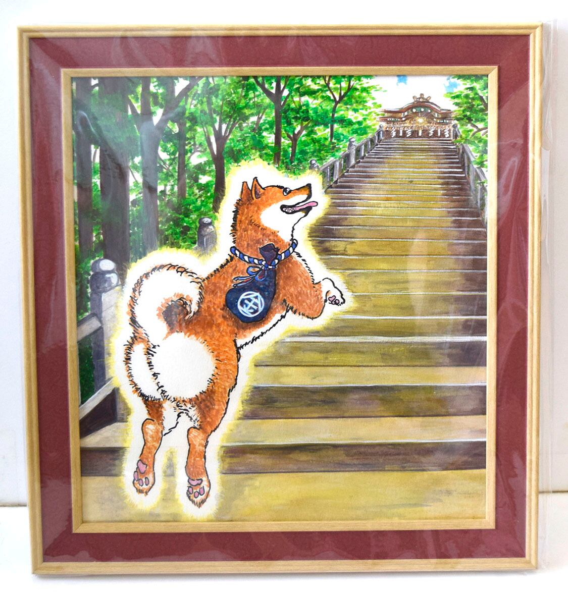 干支の11番目の戌(イヌ)は、太古から犬と人間は強い絆で結ばれ縁が深いため、特に「忠誠心・忠実」の象徴といえます。こうした犬の忠実さから、主人の代わりに参拝を行う、代参犬が存在します。伊勢参りをする「おかげ犬」と並び、金刀比羅宮へ代参することで知られる「こんぴら狗(イヌ)」をモチーフに描きました。戌年の守護本尊は阿弥陀如来。