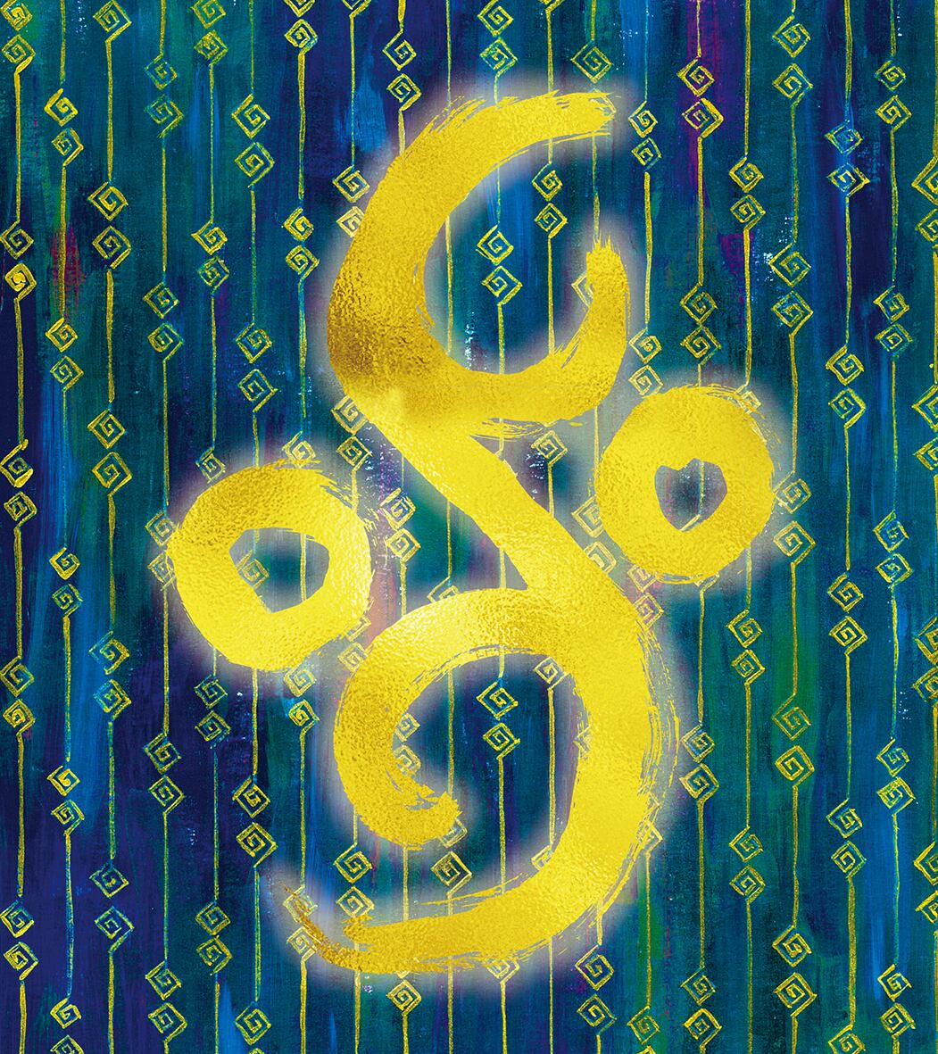 雷神は「ホノイカヅチノオオカミ」と呼ばれ、日本神話では、イザナミの身体から生まれたと伝えられています。「神鳴り」とも表現される雷は、人生における変革や覚醒を示す、神様からのメッセージともいえるでしょう。イラストは、古代の象形文字、甲骨文体で「雷」を表したものです。